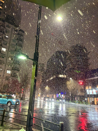 明け方にガラガラとベランダから音が出てたんで、室外機になにか絡まったんかなと思ったら雹がバラバラと降ってきた模様。会社に着いたら雪が強くなってきて、とても東京と思えない。そんな中で午前はインタビューは終了。